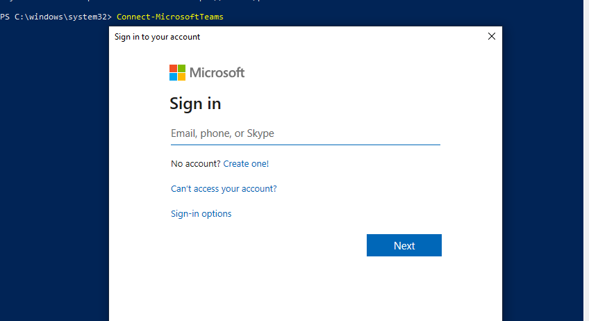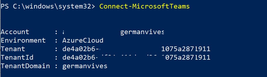 PS C:\WINDOWS\system32> connect-microsoftteams